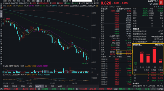 热门ETF方面,代表A股核心蓝筹的800ETF(515800)上涨0.49%,成交额超1.1亿元,在跟踪同一指数的产品中涨幅位居第一,溢价率超0.13%,值得注意的是,800ETF(515800)近5日资金净流入额超1.5亿元,市场关注度极高,资金逢跌布局、借道ETF配置A股主流宽基指数意图明显!