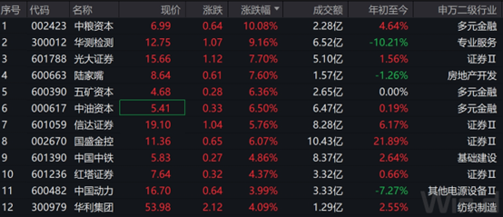 中证800成份股方面,大金融板块午后发力,中粮资本涨停,华测检测、光大证券、陆家嘴、五矿资本、中油资本涨超6%,信达证券、国盛金控、中国中铁、红塔证券、涨超4%,中国动力、华丽集团涨幅居前。