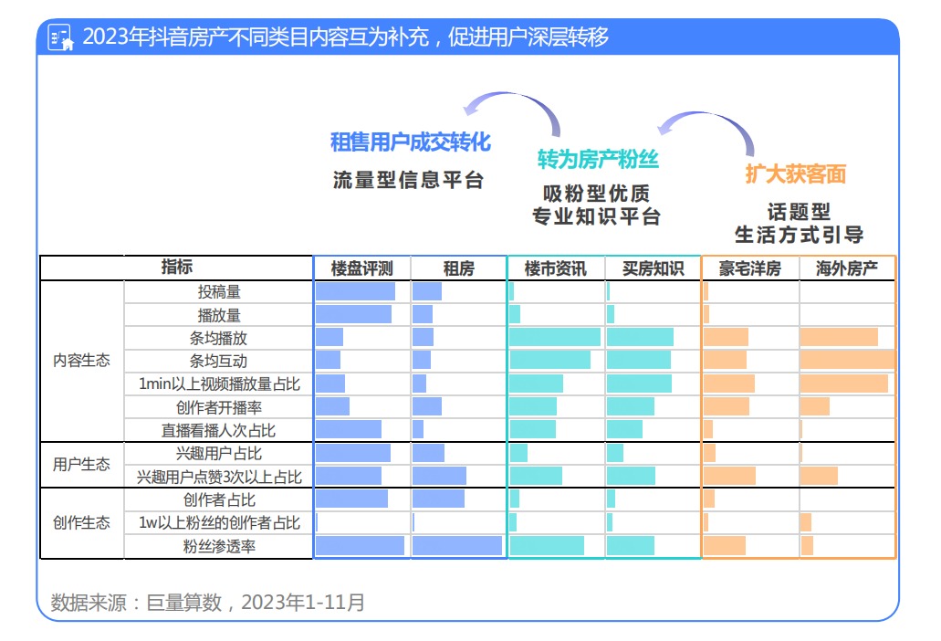 抖音则对房产的业务模式有所优化。白皮书提到,随着租、售、买方开始习惯从线上获取信息和服务,越来越多房企和渠道机构抓住转型期机会,借助抖音平台优质内容生态,通过企业号打造线上经营体系,线索收集量、企业号获取的用户私信量也随之增长,从而完成从用户触达到最终成交的转化。